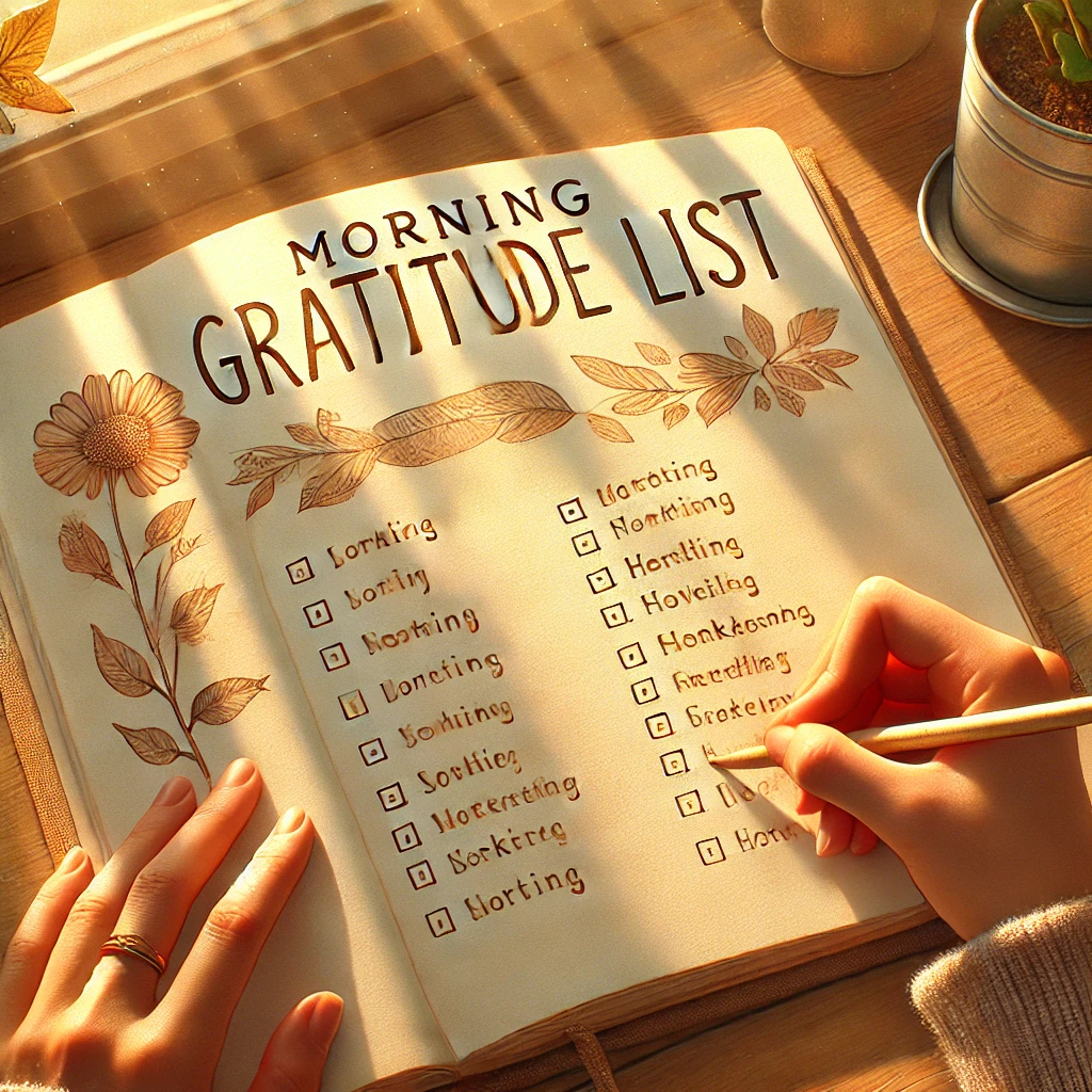 朝起きたときに、昨日の出来事や今日の楽しみに感謝するリストを作ることで、ポジティブな気持ちで一日をスタートできる。